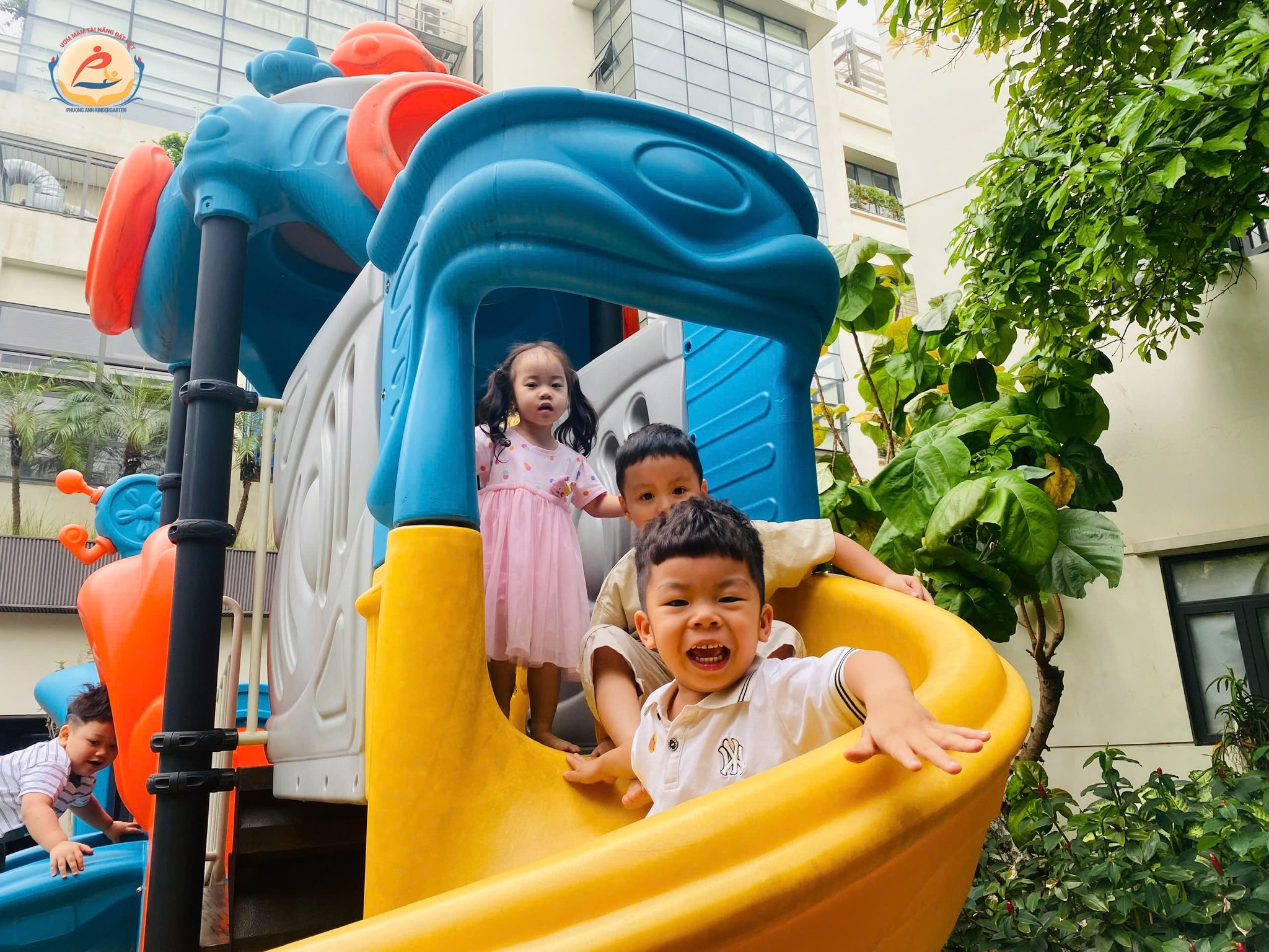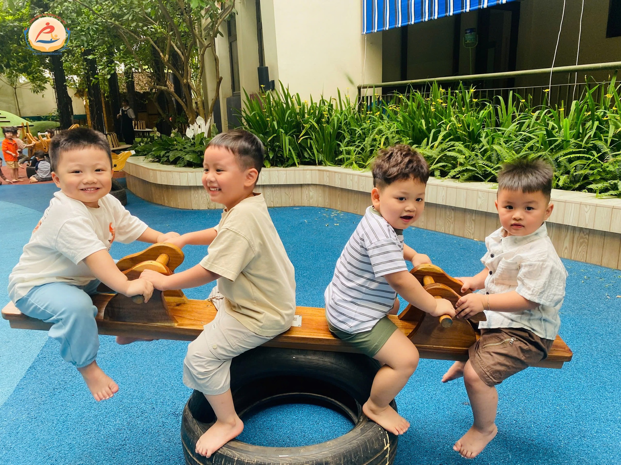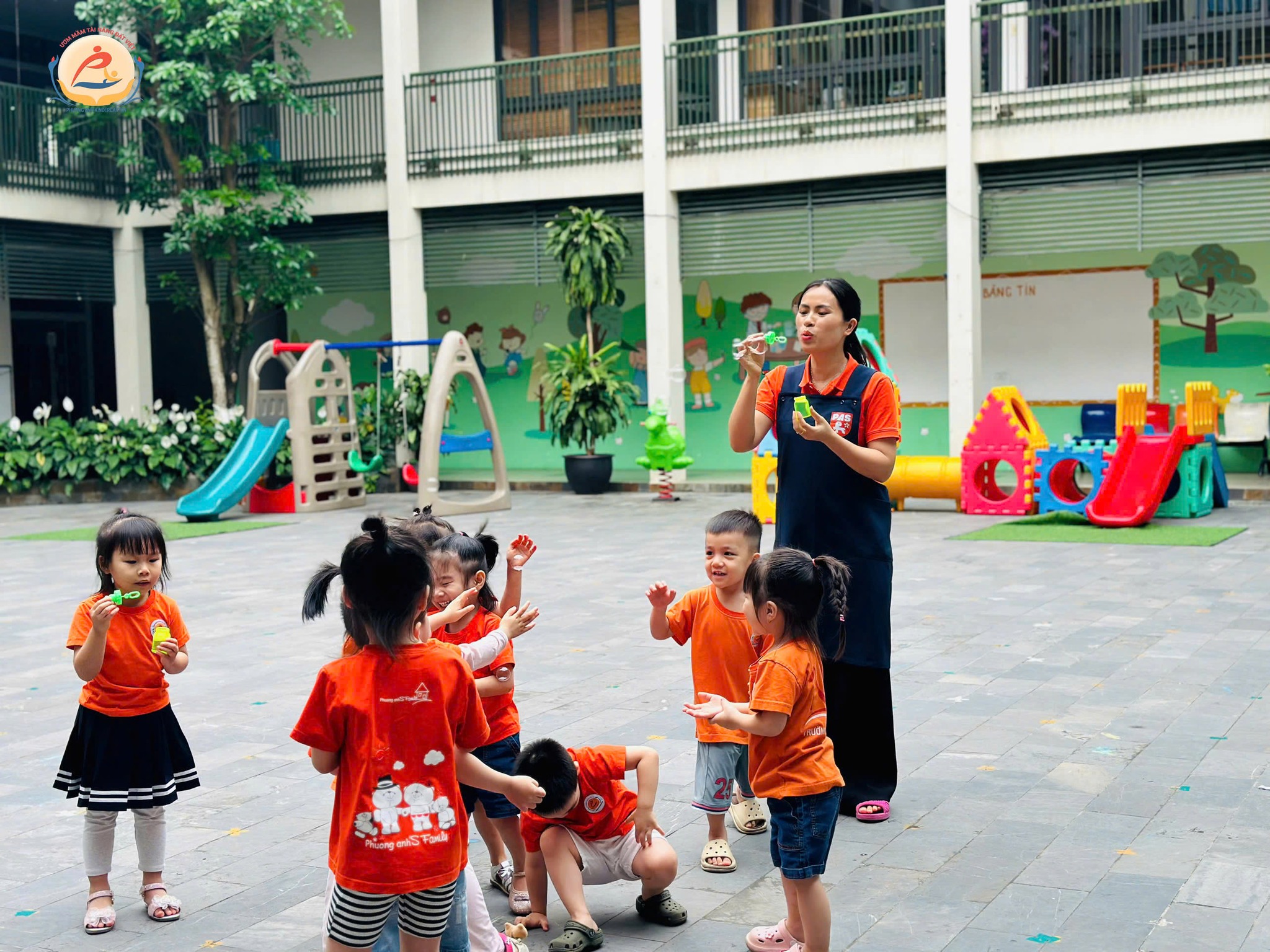 Hôm nay chúng con – các bạn nhỏ khối 3 tuổi trường Mầm non Phương Anh – được ra ngoài trời chơi thật là thích!