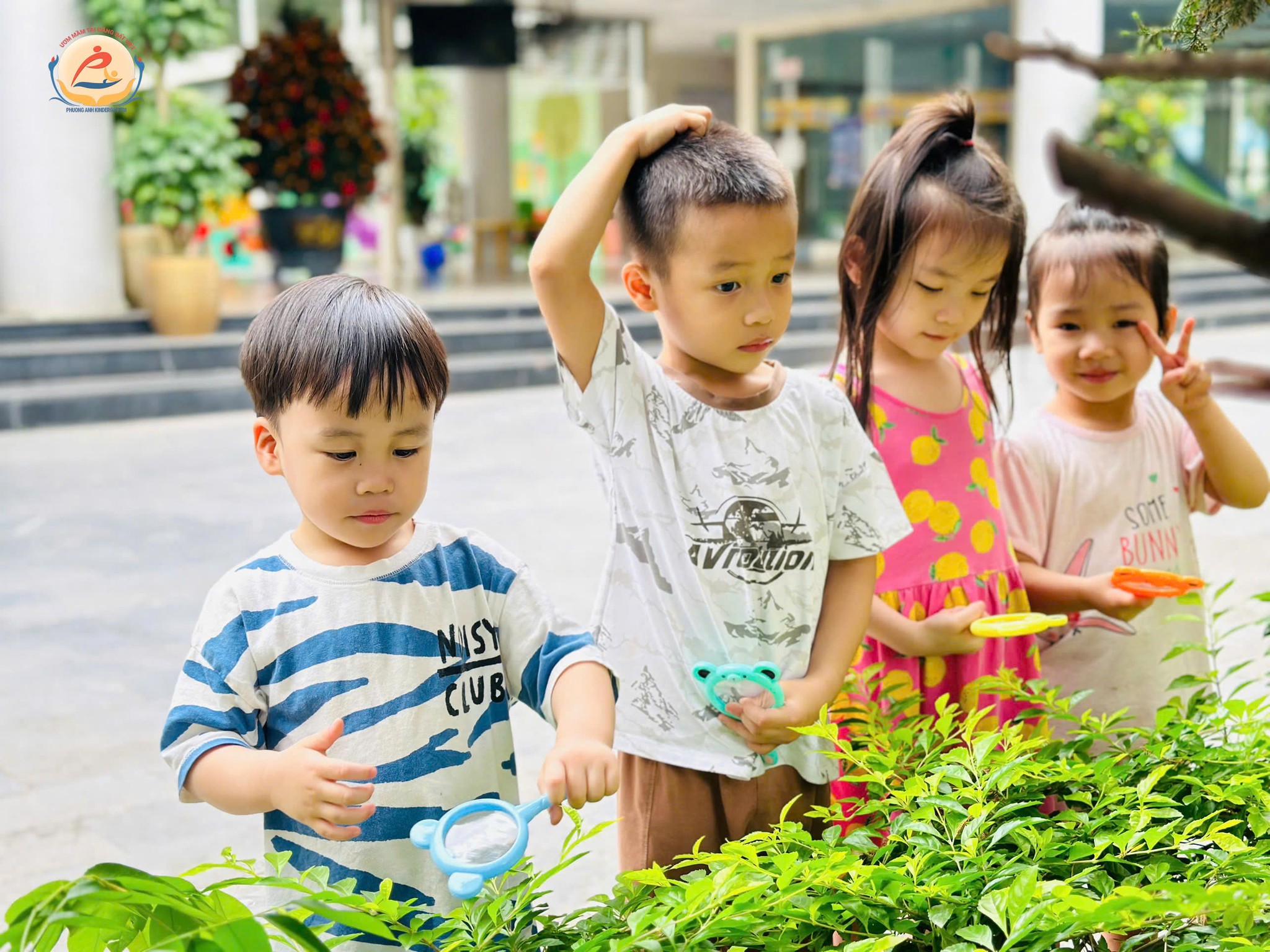 Chúng con còn được khám phá thiên nhiên, nghe chim hót và ngắm cây hoa xinh xắn