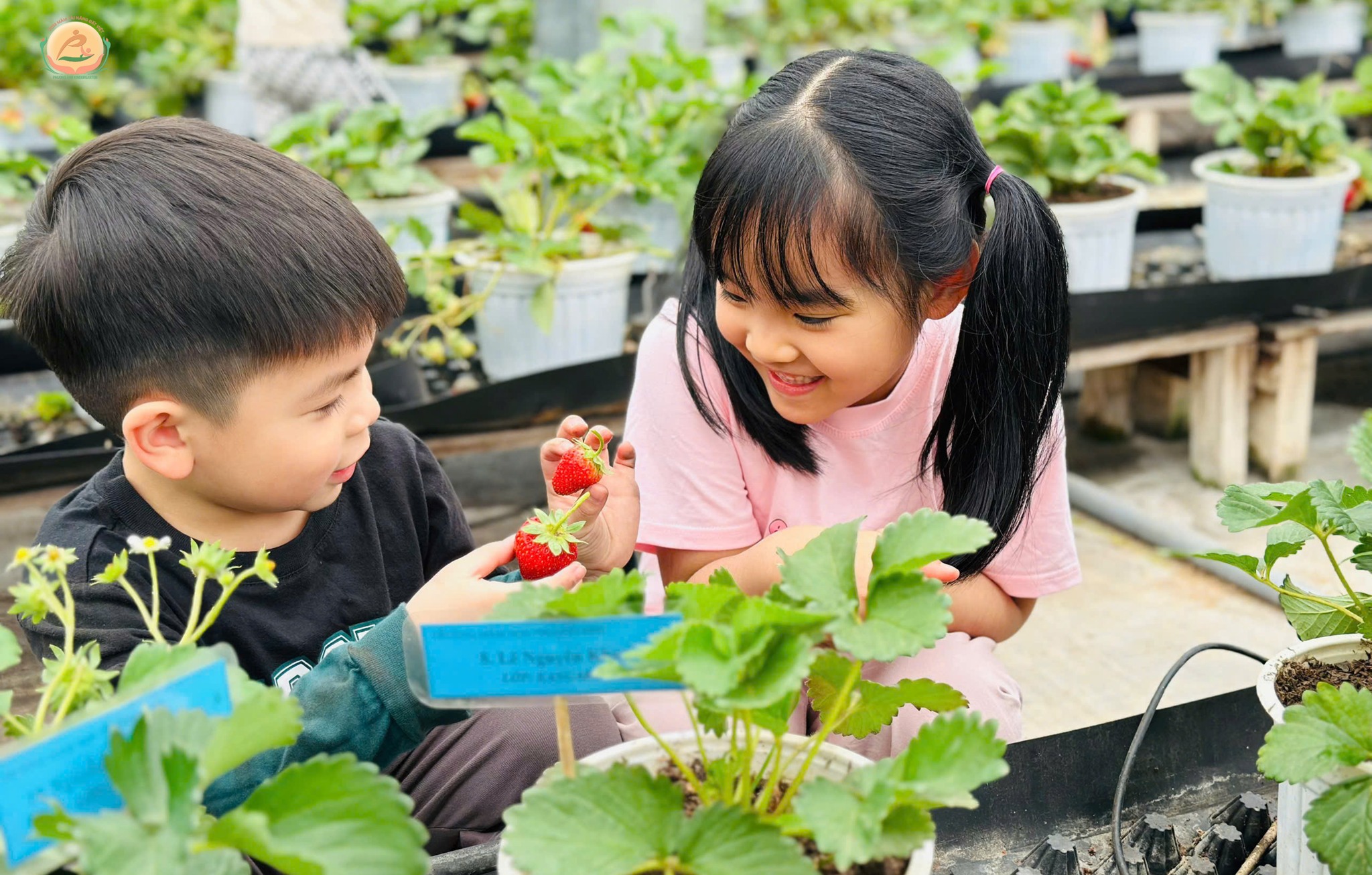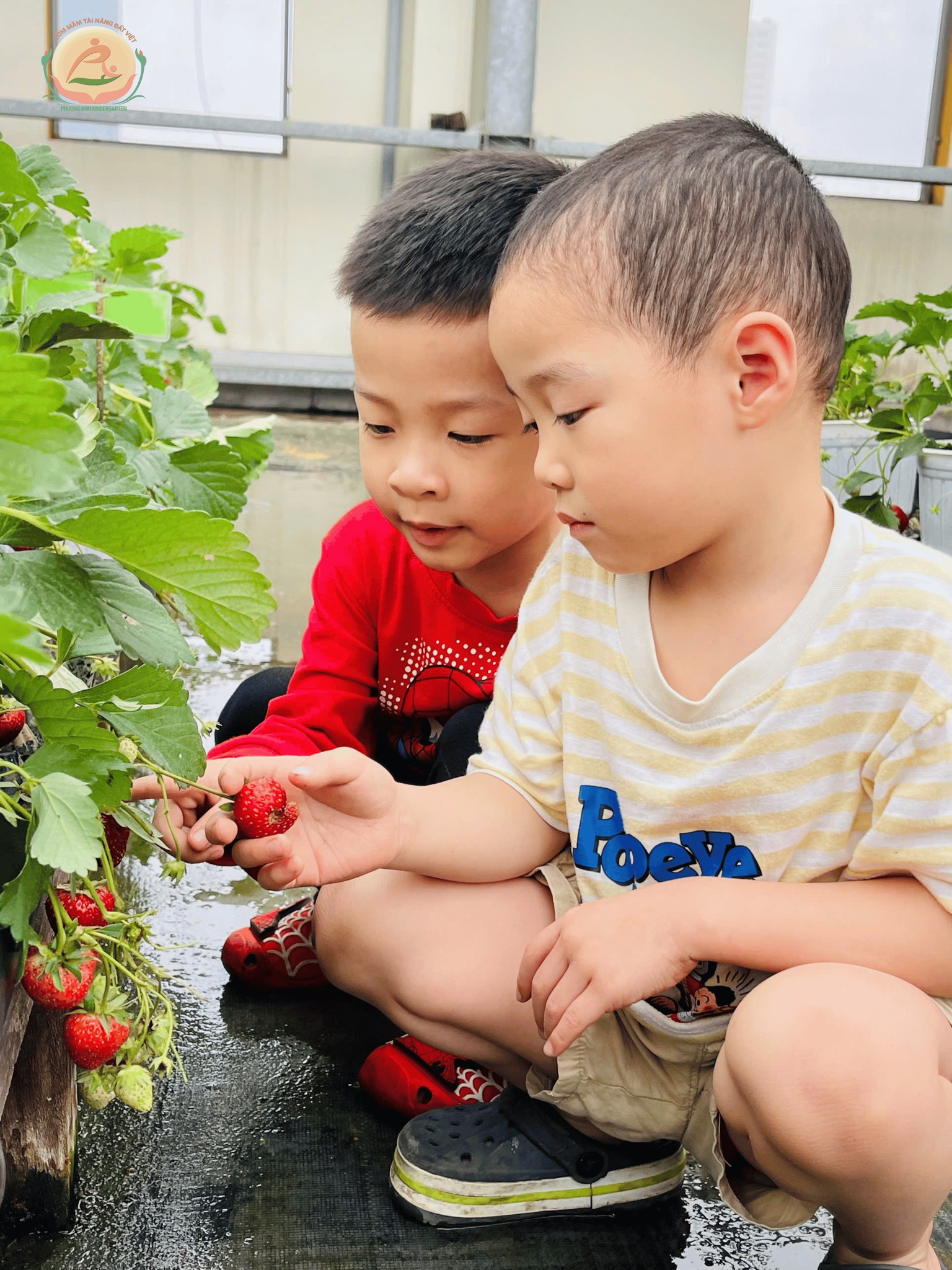 Không chỉ được vui chơi, các con còn học cách yêu thiên nhiên, biết trân trọng công sức chăm sóc để có được những trái dâu thơm ngon. Một trải nghiệm nhỏ nhưng đong đầy niềm vui, lưu lại thật nhiều kỷ niệm đáng yêu trong tuổi thơ của các bé!