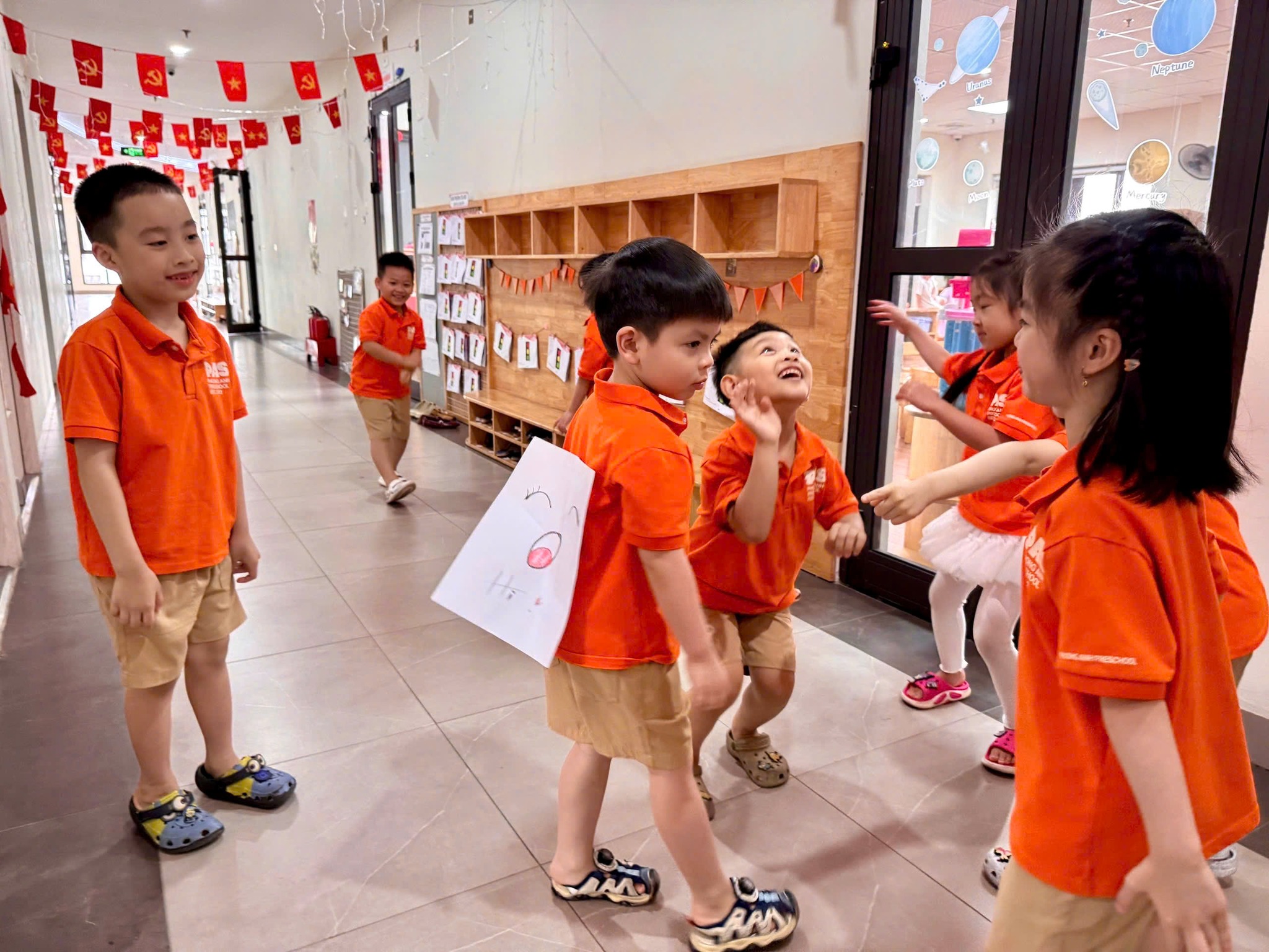 Các cô giáo cũng vui vẻ “đáp trả” bằng những màn trêu đùa đáng yêu khiến cả lớp cười khúc khích. Không khí ở các lớp học hôm nay rộn ràng hơn bao giờ hết.
