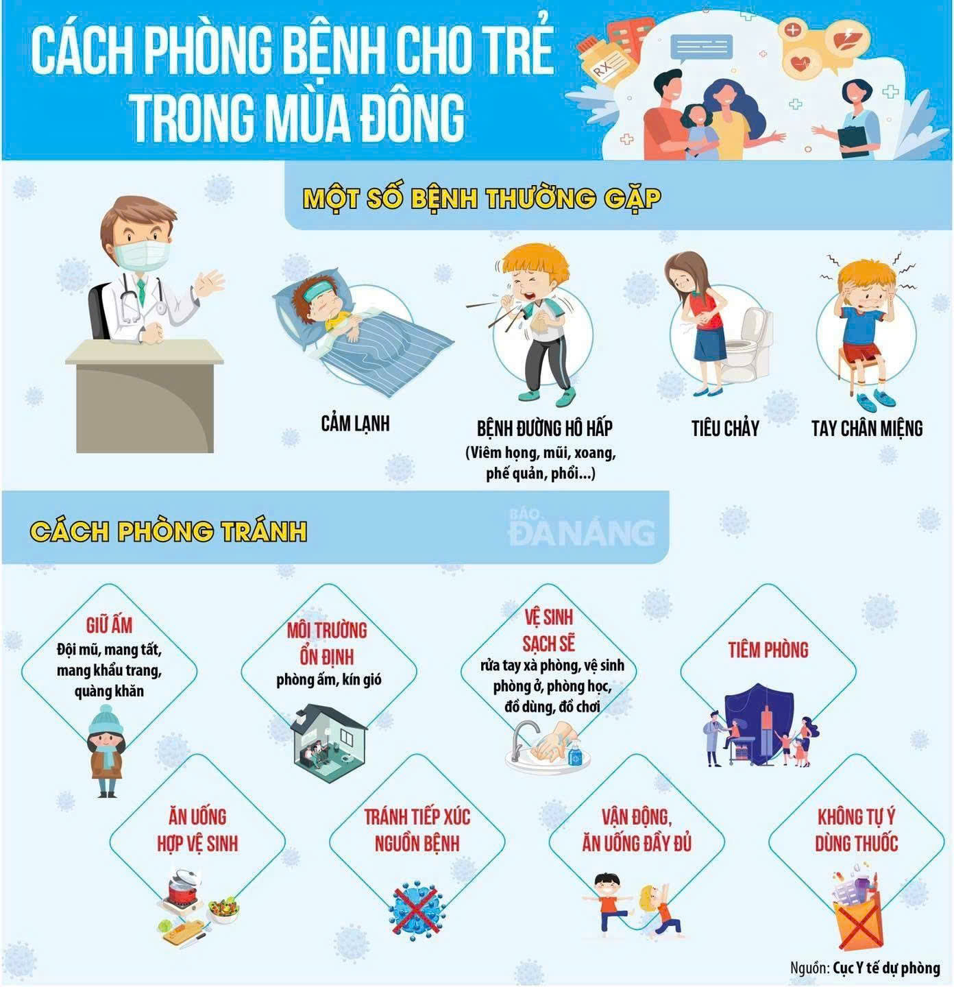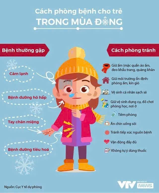 Tắm rửa đúng cách: Vào mùa đông, tắm nhanh bằng nước ấm trong phòng kín gió, sau đó lau khô người và mặc quần áo ngay.