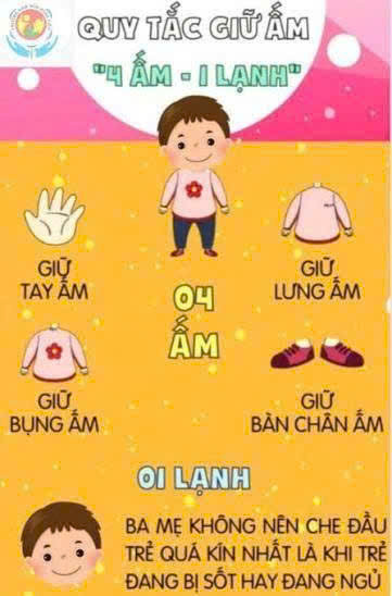 Dưới đây là những cách giữ ấm hiệu quả và an toàn cho trẻ, đặc biệt dựa trên nguyên tắc” 4 ấm 1 lạnh” được các bác sĩ nhi khoa khuyên dùng.